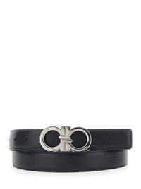 Ferragamo Men Black Reversible Belt With Gancini Buckle In Hammered Leather Man