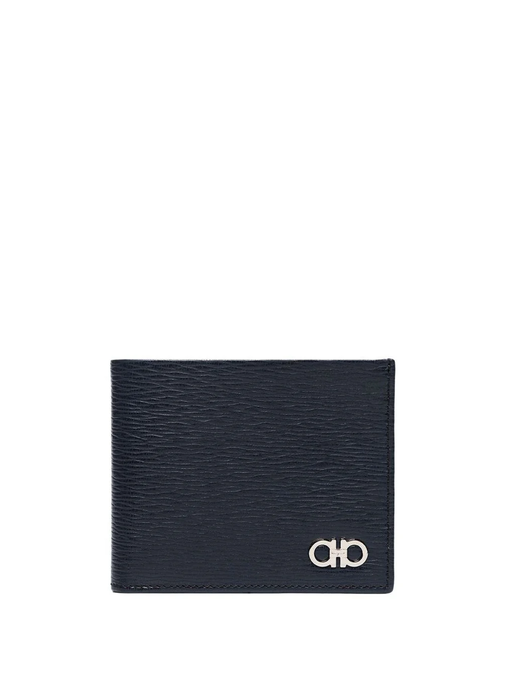 Ferragamo Men Blue Wallet With Metallic Front Logo In Leather Man