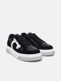 Ferragamo Men Cassina' Black Leather Blend Sneakers