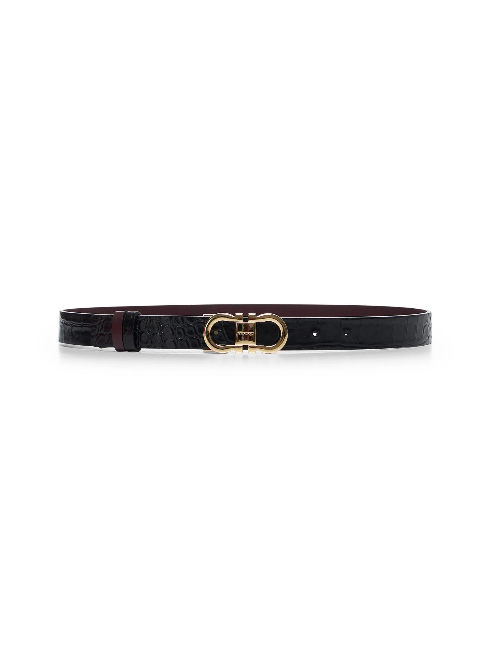 •Adjustable squared profile gold-toned metal Gancini buckle fastening; detachable buckle•Two-tone leather loops•Reversible•Black glossy alligator-embossed leather and burgundy smooth leather design•Color: black/burgundy•100% Calf Leather•Made in Italy SKU: 230294donnah25771073 Our Products Are 100% Genuine. In All Cases We Stand By The Authenticity Of Every Product Sold On Our Site. All sales are final and we only accept returns for quality issue. Buyer is responsible for any import tax/duty if applicable.
