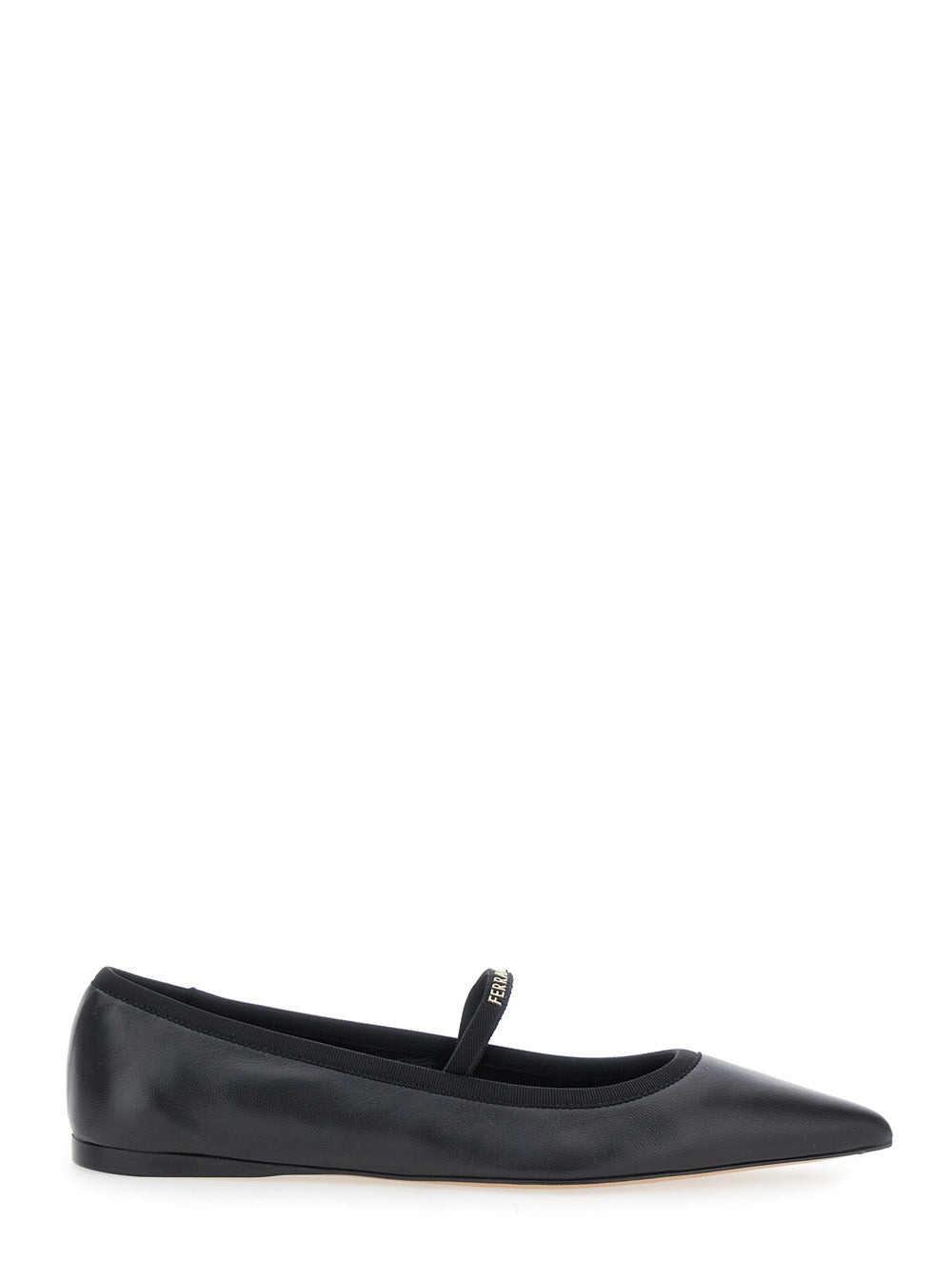 Ferragamo Women 'Carice' Black Ballet Shoes With Ribbon Detail And Logo Lettering On The Front In Le