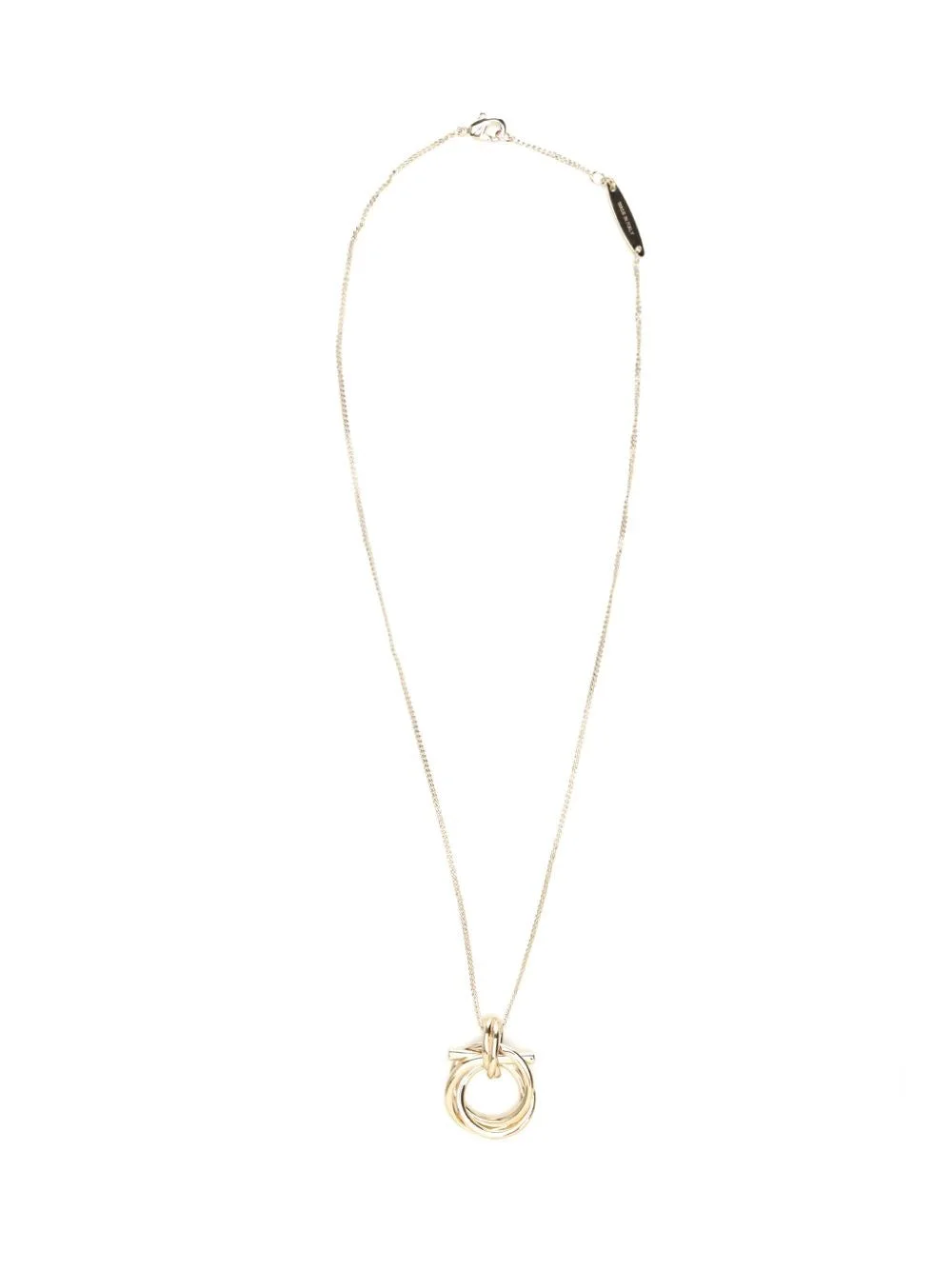 Ferragamo "Gancini" brass necklace with braided pendant. 100% BRASS # # # Made in: IT SKU: 760551751631001 Our Products Are 100% Genuine. In All Cases We Stand By The Authenticity Of Every Product Sold On Our Site. All sales are final and we only accept returns for quality issue. Buyer is responsible for any import tax/duty if applicable.