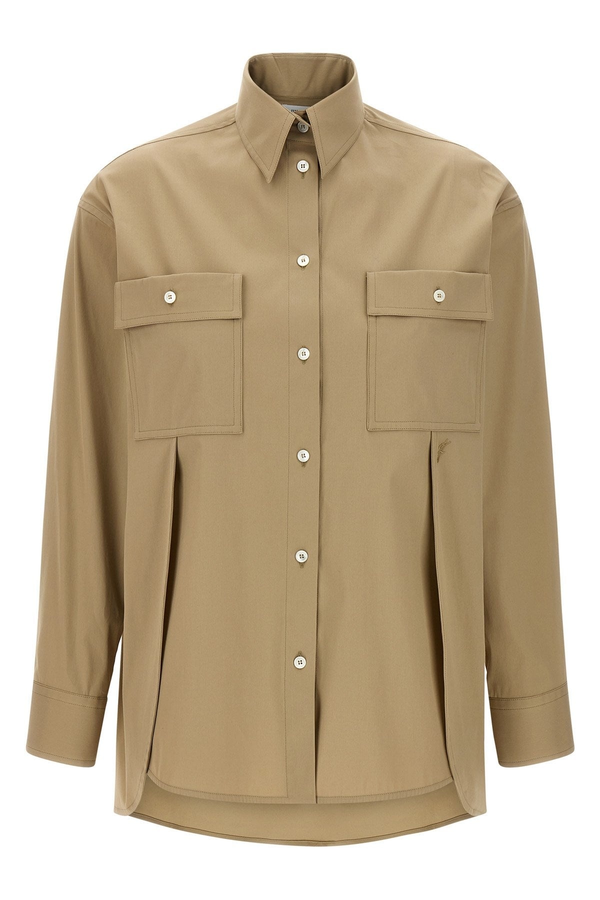 Stretch cotton poplin shirt with panel construction, tone-on-tone logo embroidery on the front, button closure, pockets, long cuffed sleeves. Color: Beige Size & Fit: Comfort fit Composition: 78% cotton 17% polyamide 5% elastane Made in: Italy SKU: 780916STONE Our Products Are 100% Genuine. In All Cases We Stand By The Authenticity Of Every Product Sold On Our Site. All sales are final and we only accept returns for quality issue. Buyer is responsible for any import tax/duty if applicable.