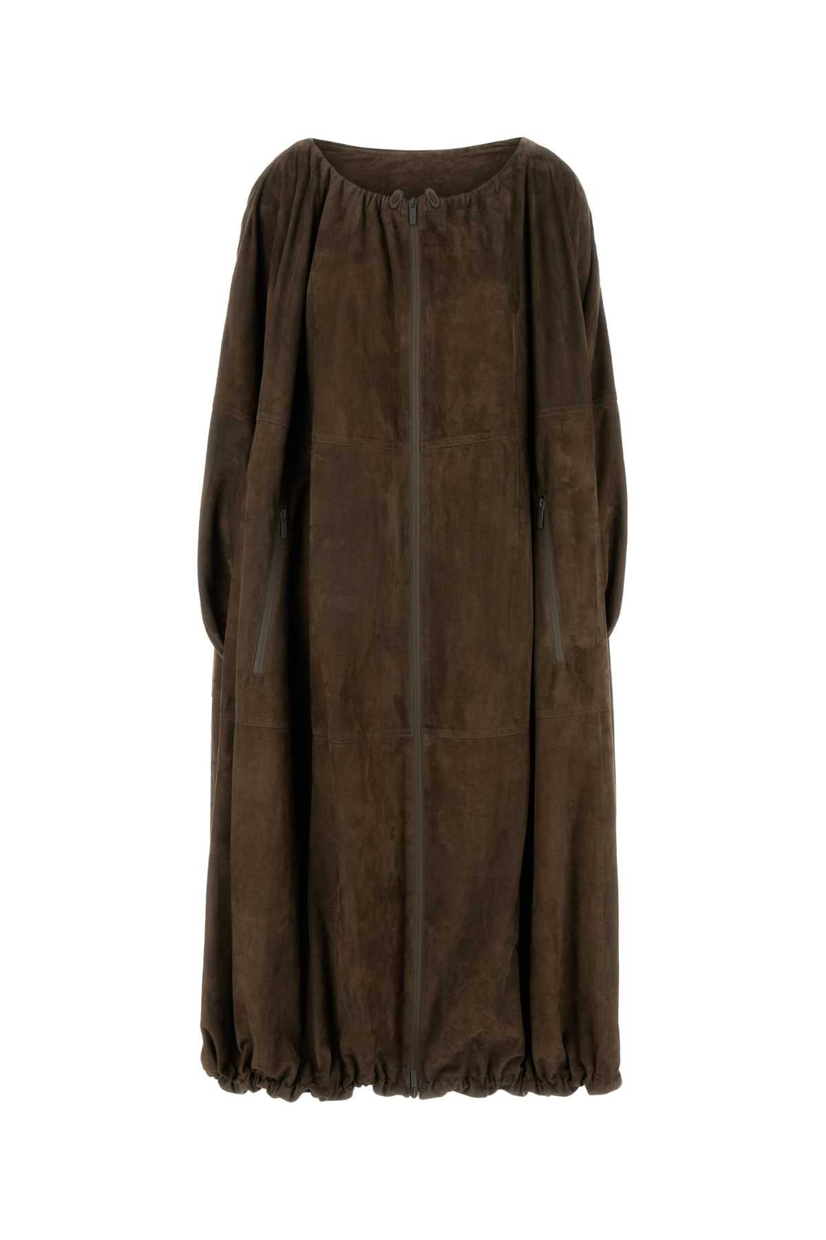 Salvatore Ferragamo Women Brown Suede Overcoat