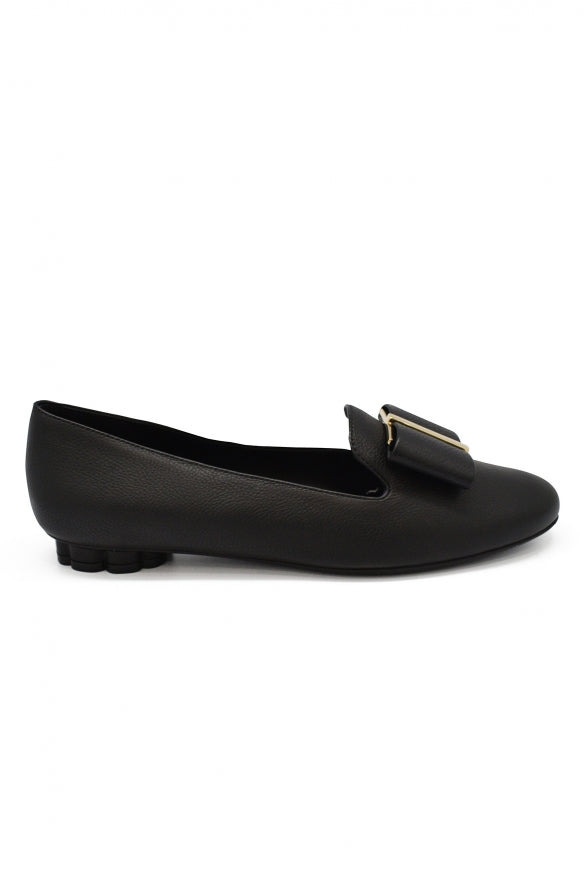 <p>Salvatore Ferragamo round-toe black leather slippers. Bow and golden flower heel. Heel 1 cm. Made in Italy.</p> Size Type: IT SKU: 684335 Our Products Are 100% Genuine. In All Cases We Stand By The Authenticity Of Every Product Sold On Our Site. All sales are final and we only accept returns for quality issue. Buyer is responsible for any import tax/duty if applicable.