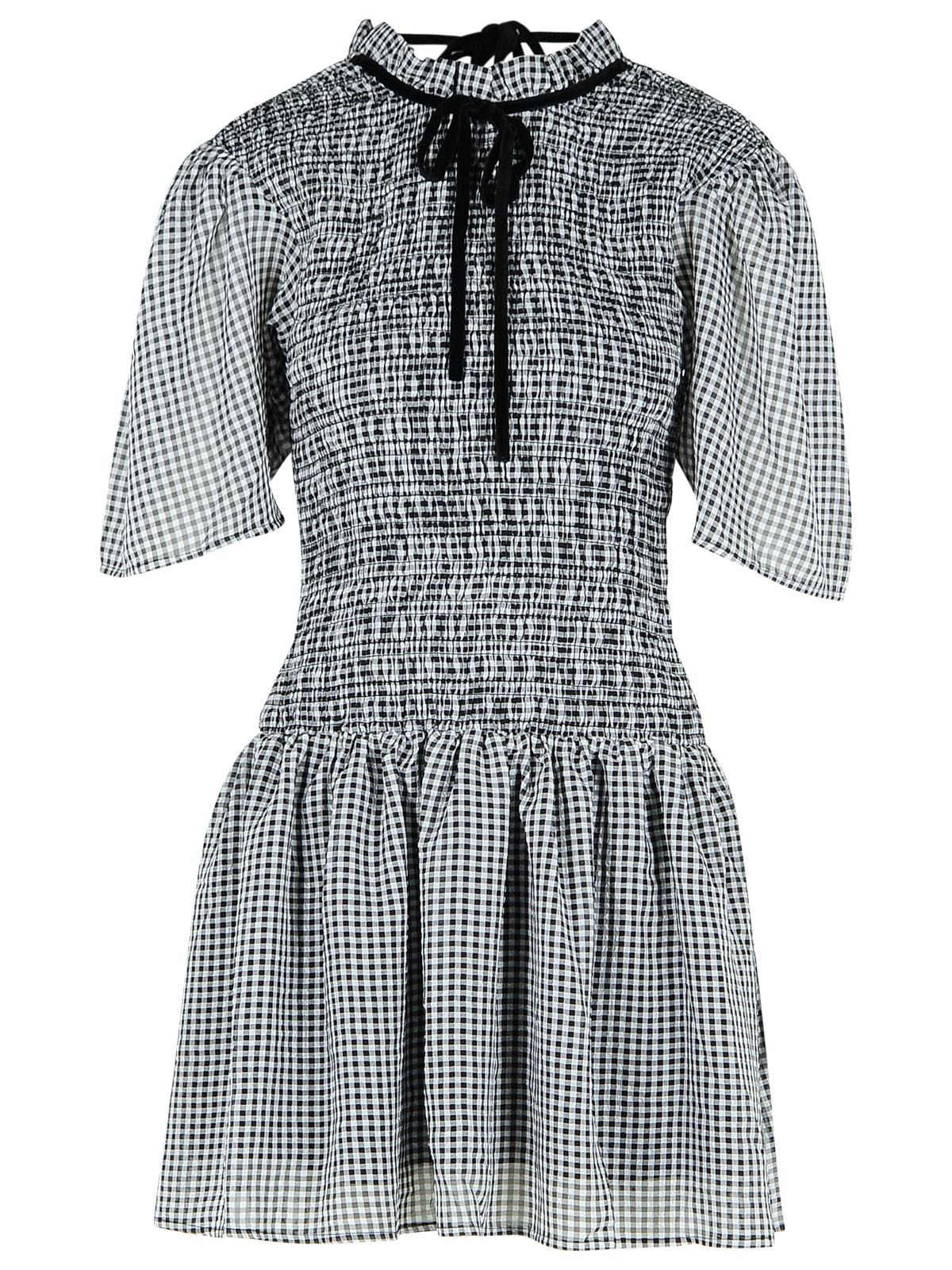 SHEER CHECK MINI SMOCK DRESS