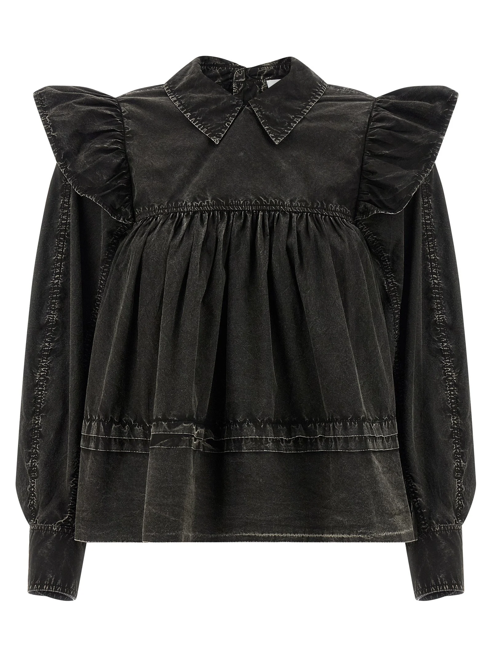 'Black Washed Frill' cotton blouse dyed in a delave effect garment, model with curls and mini flounces on the front and back, long wide sleeves with cuffs and maxi ruffles on the shoulder, back button closure. SUSTAINABLE: This product is made of organic cotton. relaxed fit - EU size 100% organic cotton SKU: A1040061099 Our Products Are 100% Genuine. In All Cases We Stand By The Authenticity Of Every Product Sold On Our Site. All sales are final and we only accept returns for quality issue. Buyer is responsible for any import tax/duty if applicable.