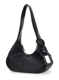 Ganni Women 'Bou Bag Hobo Medium' Black Shoulder Bag With Shoulder Strap And Removable Logo Patch In