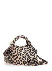 Ganni Women 'Bou' Brown Small Handbag With Braided Handle And All-Over Leopard Motif In Fabric Woman