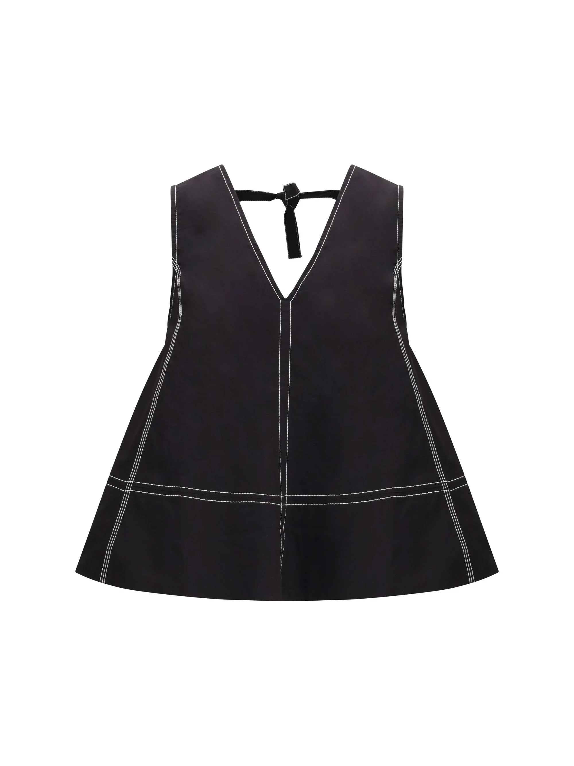 The Cotton A-line Top By Ganni elevates simplicity through a refined play of lines and structure. The V-neckline introduces a clean, effortless elegance, enhanced by contrast stitching that outlines the silhouette with graphic precision. At the back, the lowered opening is finished with a tied detail that brings softness and modern femininity. A piece that turns understatement into presence. Size Type: IT SKU: A1040068099 Our Products Are 100% Genuine. In All Cases We Stand By The Authenticity Of Every Product Sold On Our Site. All sales are final and we only accept returns for quality issue. Buyer is responsible for any import tax/duty if applicable.