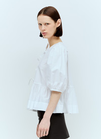 COTTON POPLIN PEPLUM TIE BLOUSE