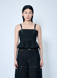 Fluffy denim top with peplum hem. Square neckline Camisole straps Peplum hem Contrast topstitching 100% Cotton. Hand wash J1615 099 SKU: J1615099 Our Products Are 100% Genuine. In All Cases We Stand By The Authenticity Of Every Product Sold On Our Site. All sales are final and we only accept returns for quality issue. Buyer is responsible for any import tax/duty if applicable.