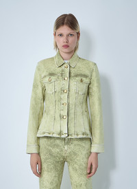 YELLOW FOIL OVERDYED DENIM FITTED BLAZER