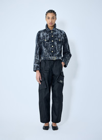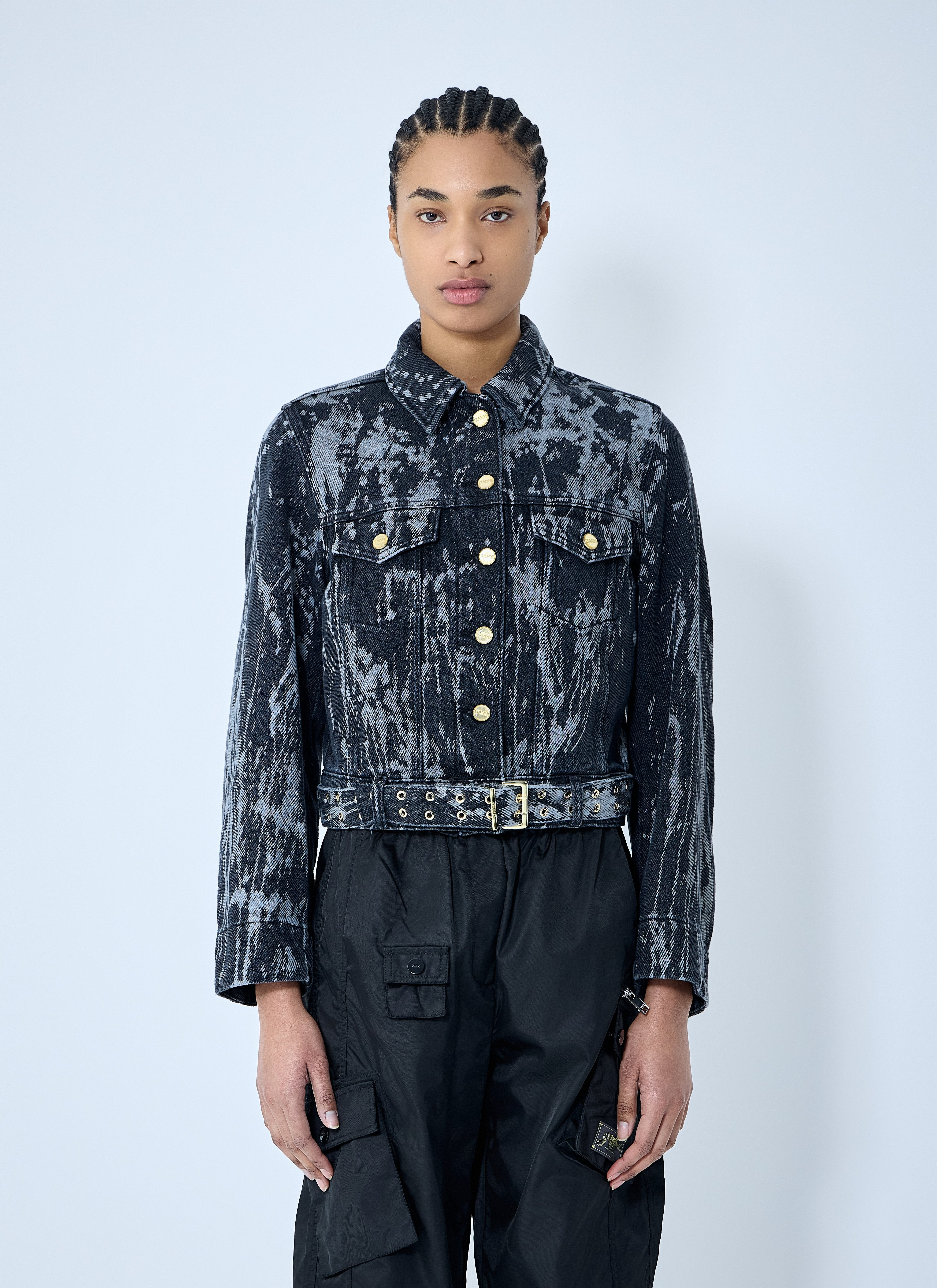 Printed denim jacket with belted construction at hem. Classic collar Front button fastening Long sleeves Front button fastening pockets Belt loops at hem Detachable belt at hem 100% Cotton. Dry clean J1599 006 SKU: J1599006 Our Products Are 100% Genuine. In All Cases We Stand By The Authenticity Of Every Product Sold On Our Site. All sales are final and we only accept returns for quality issue. Buyer is responsible for any import tax/duty if applicable.