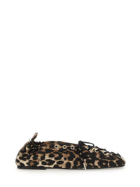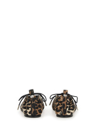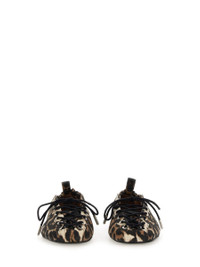 LEOPARD PRINTED DENIM EYELETS LACE UP BALLERINAS