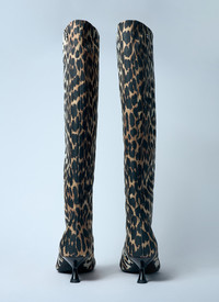 Ganni Women Leopard Eyelets Slouchy High Shaft Boots