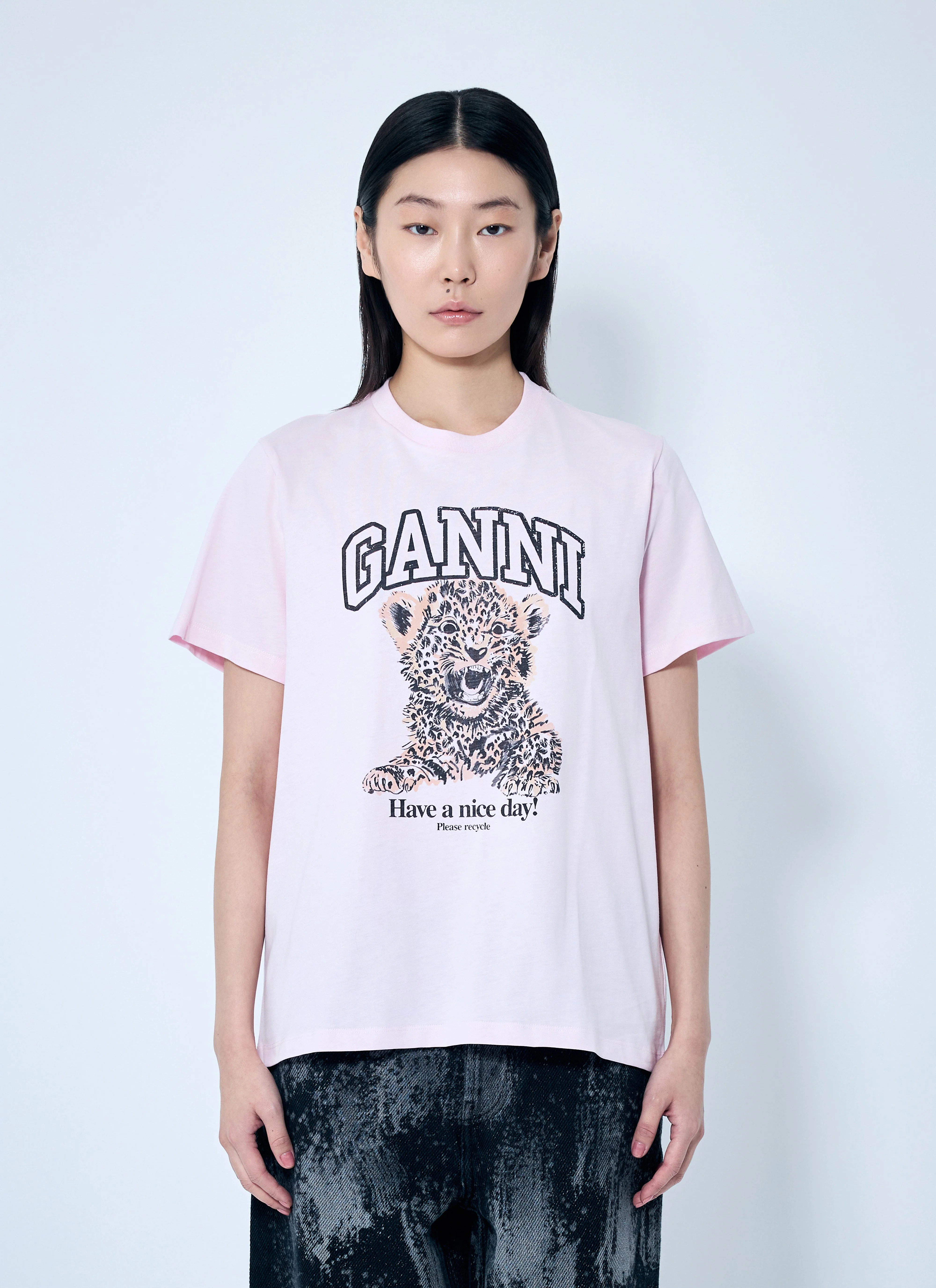 PINK BASIC JERSEY LEOPARD RELAXED T-SHIRT