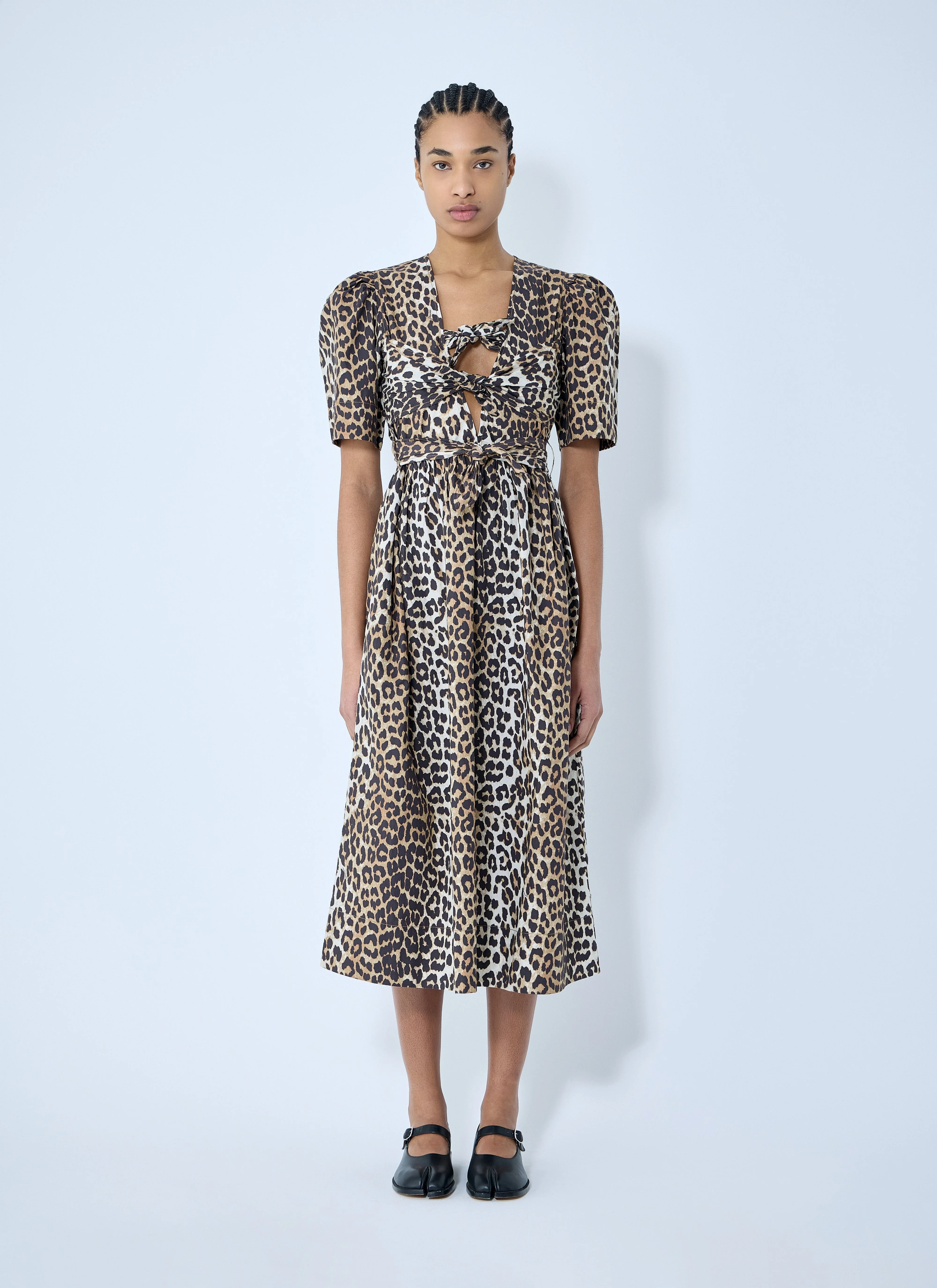 Ganni Women Leopard Print Tie Strap Midi Dress