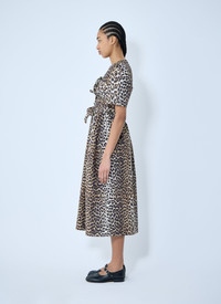 LEOPARD PRINTED COTTON TIE STRAP MIDI DRESS