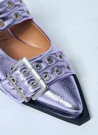 Ganni Women Metallic Feminine Buckle Ballerina Flats