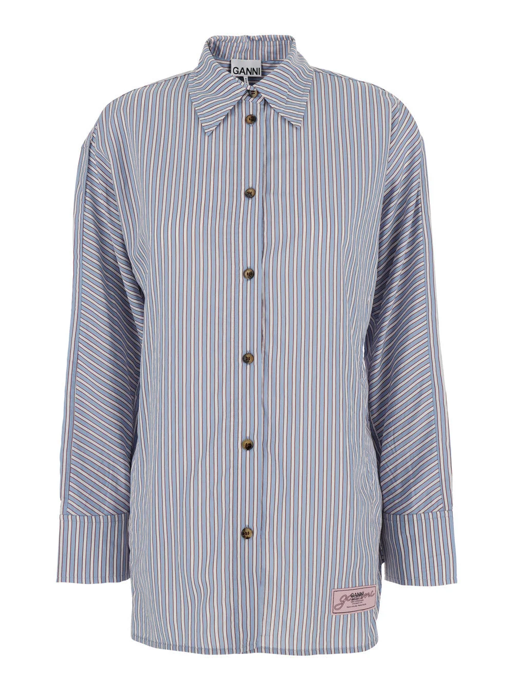 Ganni Women Multicolor Shirt With All-Over Stripes And Logo Patch On The Front In Viscose Blend Woma