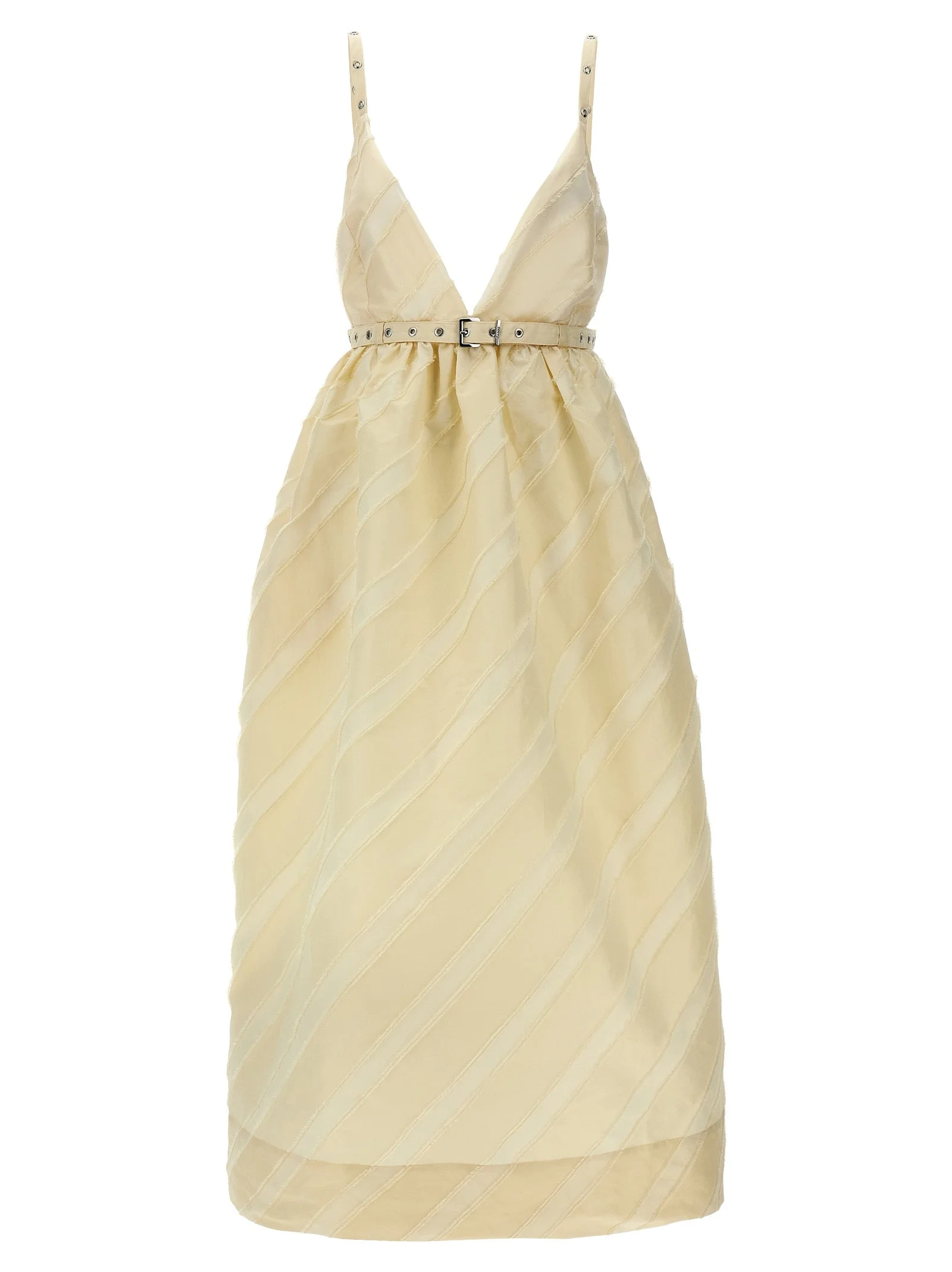 Belted eyelet-embellished striped taffeta midi dress Cream