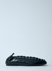 BLACK OLEATEX EYELETS LACE UP BALLERINAS