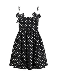 The Polka-Dot Satin Mini Dress blends the lightness of satin with an iconic polka-dot pattern, shaping a fresh and alluring mini silhouette. Thin spaghetti straps frame the straight neckline with effortless elegance, while the front bow adds a romantic touch that softens the clean lines. At the back, an elastic panel ensures comfort and ease of wear, completed by a discreet zipper that keeps the look polished and refined. Size Type: IT SKU: A1030193099 Our Products Are 100% Genuine. In All Cases We Stand By The Authenticity Of Every Product Sold On Our Site. All sales are final and we only accept returns for quality issue. Buyer is responsible for any import tax/duty if applicable.