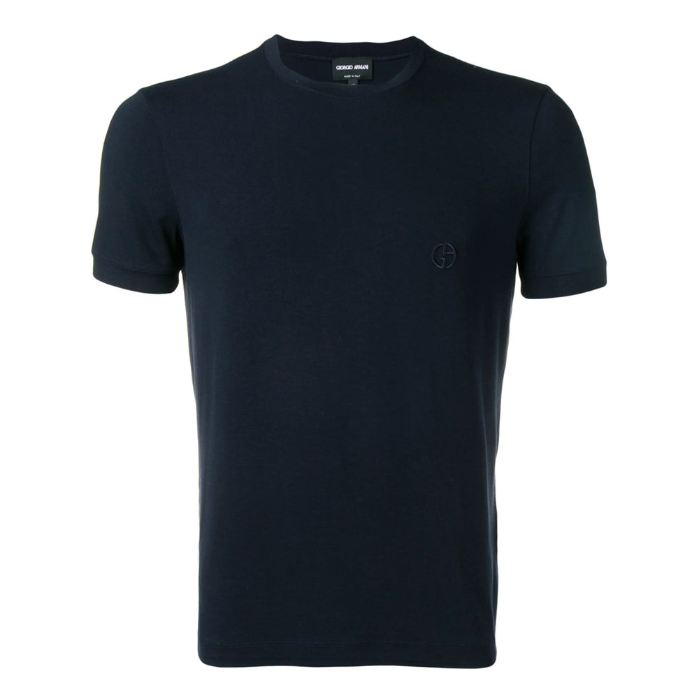 Navy blue embroidered logo T-shirt from Giorgio Armani featuring a crew neck, short sleeves, a logo to the chest and a straight hem. MADE IN:ItalyMATERIAL:Spandex/elastane: 10%, Viscose: 90%COLOR:BLUE SKU: SJP4Z3GST52UBSG Our Products Are 100% Genuine. In All Cases We Stand By The Authenticity Of Every Product Sold On Our Site. All sales are final and we only accept returns for quality issue. Buyer is responsible for any import tax/duty if applicable.