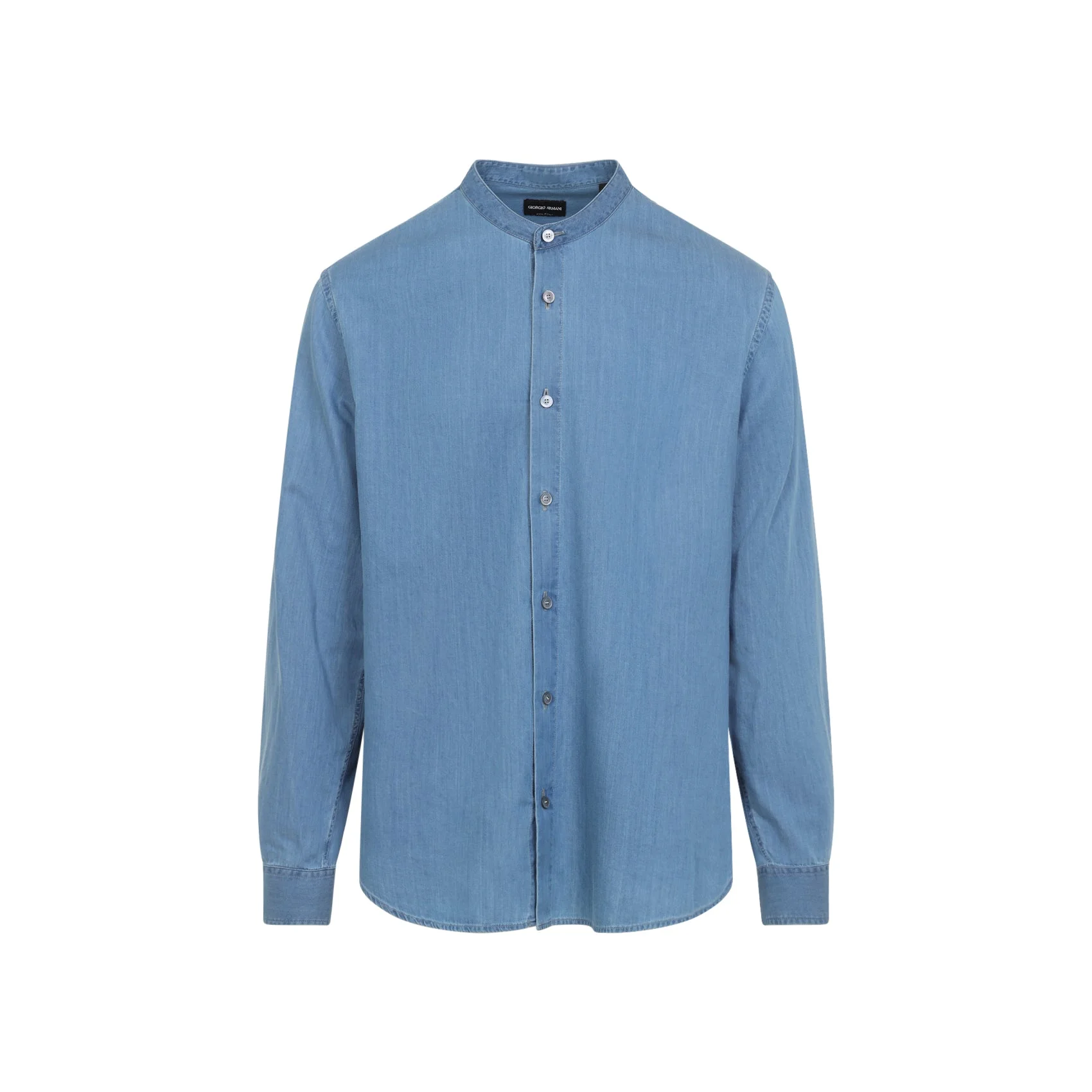 Giorgio Armani Light Blue Cotton Shirt. Crafted from light blue cotton denim, korean collar, front button fastening, long sleeves with buttoned cuffs, back yoke, round hem. Cotton | 100%COTTON Size Type: IT SKU: GM002512AF15417Blue Our Products Are 100% Genuine. In All Cases We Stand By The Authenticity Of Every Product Sold On Our Site. All sales are final and we only accept returns for quality issue. Buyer is responsible for any import tax/duty if applicable.