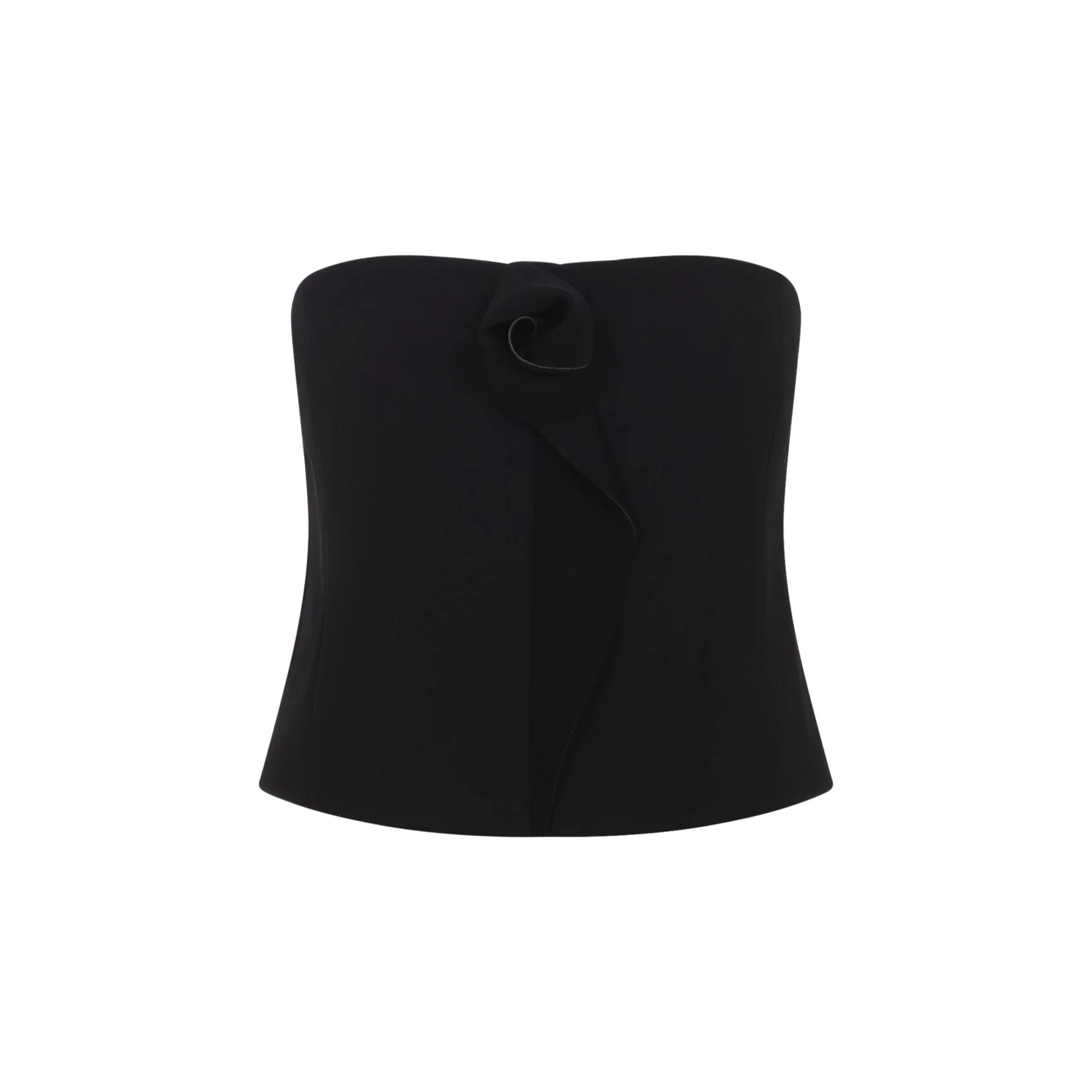 Giorgio Armani Black Beauty Silk Top. Pure black beauty silk top, strapless, squared neck, corset design, tonal embellishment 3D flower detail, back zipped fastening, cropped design, round hem. Silk | 100%SILK Size Type: IT SKU: GW002882TE10071Black Our Products Are 100% Genuine. In All Cases We Stand By The Authenticity Of Every Product Sold On Our Site. All sales are final and we only accept returns for quality issue. Buyer is responsible for any import tax/duty if applicable.