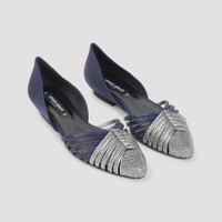 Giorgio Armani Blue Viscose Ballerinas. Crafted from blue and silver viscose and silk satin, pointed toe, front crossed fine straps adorned with crystals, open sides, leather insole, covered slanted heel, leather outsole. Viscose | 72%VISCOSE 28%SILK Size Type: IT SKU: GW001923AF20743Metallic Our Products Are 100% Genuine. In All Cases We Stand By The Authenticity Of Every Product Sold On Our Site. All sales are final and we only accept returns for quality issue. Buyer is responsible for any import tax/duty if applicable.
