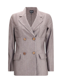 PINSTRIPED CASHMERE JERSEY AND SILK DOUBLE-BREASTED JACKET