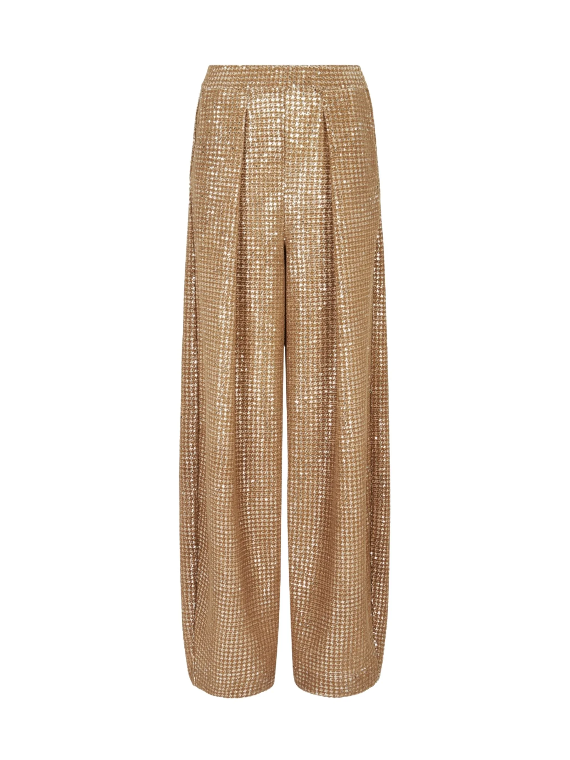 SINGLE-PLEAT JERSEY TROUSERS WITH A FLOCKED PRINT AND SEQUINS