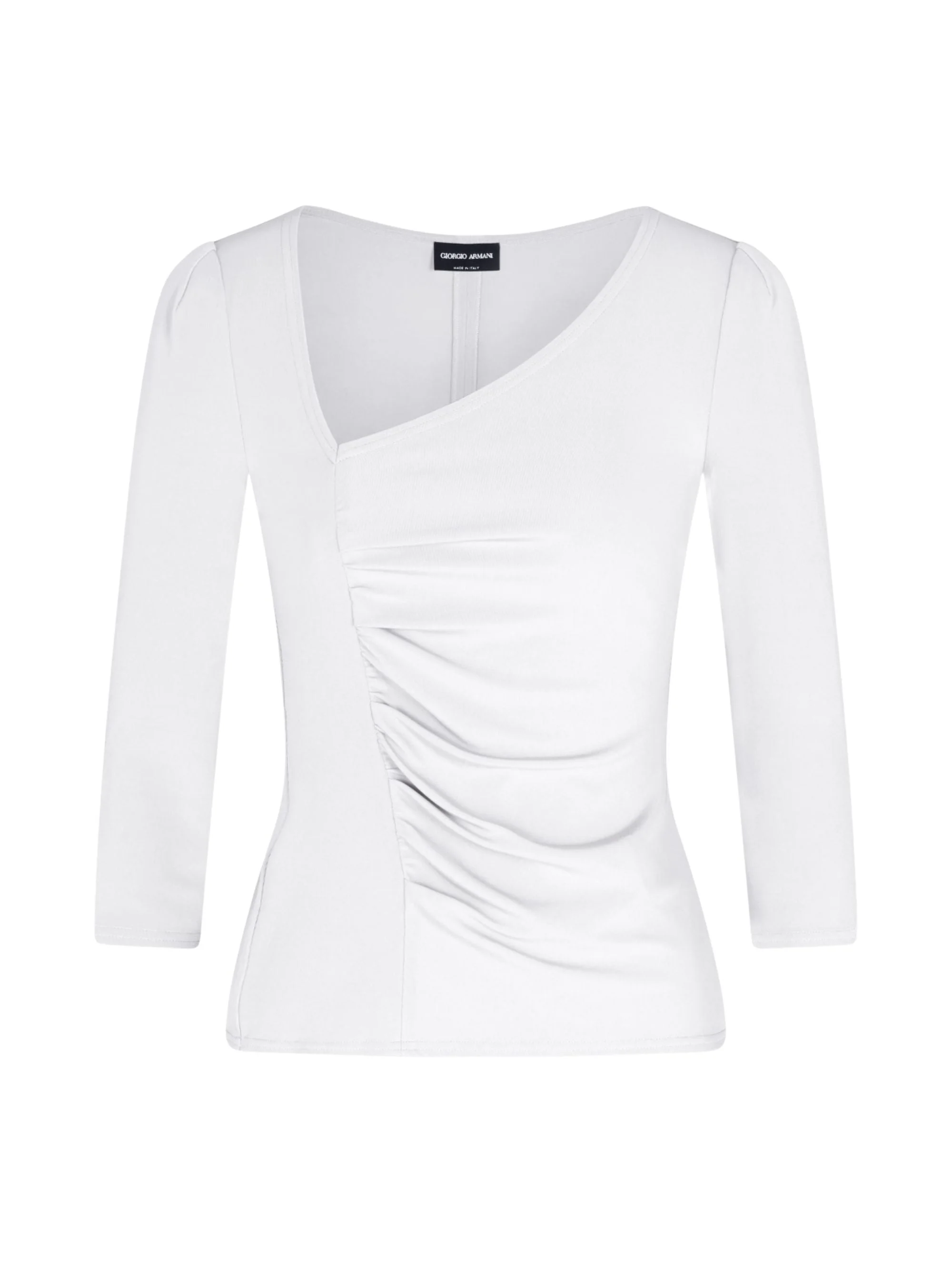 DESCRIPTION ::GIORGIO ARMANI white asymmetric neck sweater in viscose jersey, featuring three-quarter sleeves, side draping and a back zip fastening.MADE IN::ItalyCOLOR::WHITE SKU: GW002155AF19844U1102WHITE Our Products Are 100% Genuine. In All Cases We Stand By The Authenticity Of Every Product Sold On Our Site. All sales are final and we only accept returns for quality issue. Buyer is responsible for any import tax/duty if applicable.