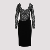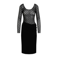 Givenchy Black Dress. Crafted in viscose fabric. Round neck, side zipped fastening, long sleeves, asymmetric draped waist, midi-length, straight hem. Transparent fabric on the top with black signature logo pattern all-over. Viscose | 100%VISCOSE Size Type: FR SKU: BW229920GUBlack Our Products Are 100% Genuine. In All Cases We Stand By The Authenticity Of Every Product Sold On Our Site. All sales are final and we only accept returns for quality issue. Buyer is responsible for any import tax/duty if applicable.