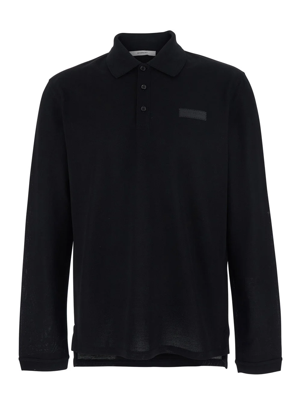 Givenchy Men Black Polo Shirt With Logn Sleeves And Chest Logo Patch In Cotton Man