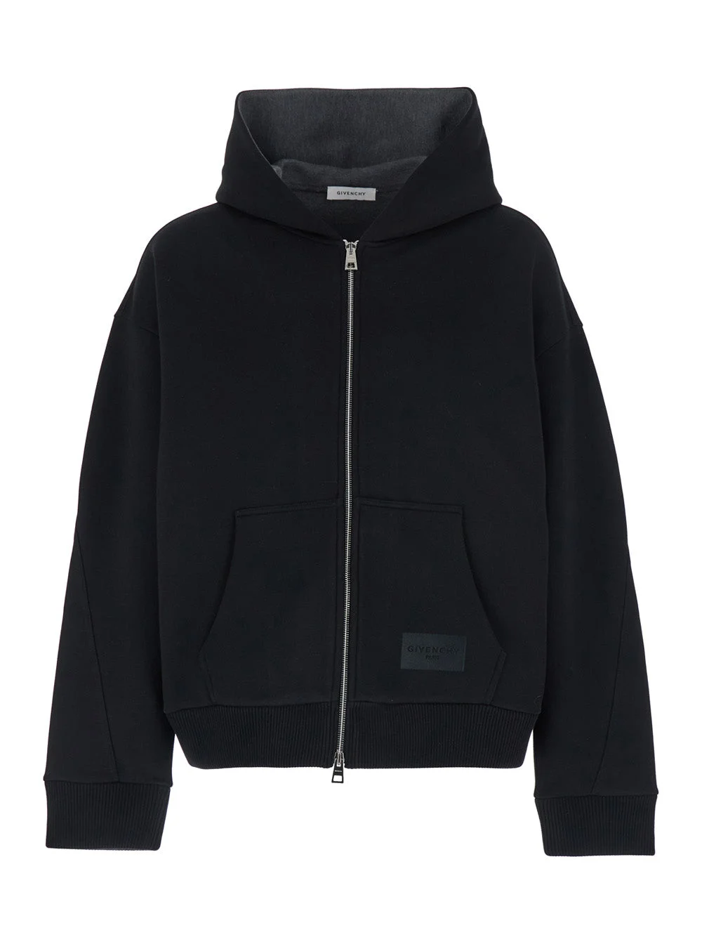 Givenchy Men Black Sweatshirt With Logo Patch On The Front And Kangaroo Pocket In Cotton Blend Man