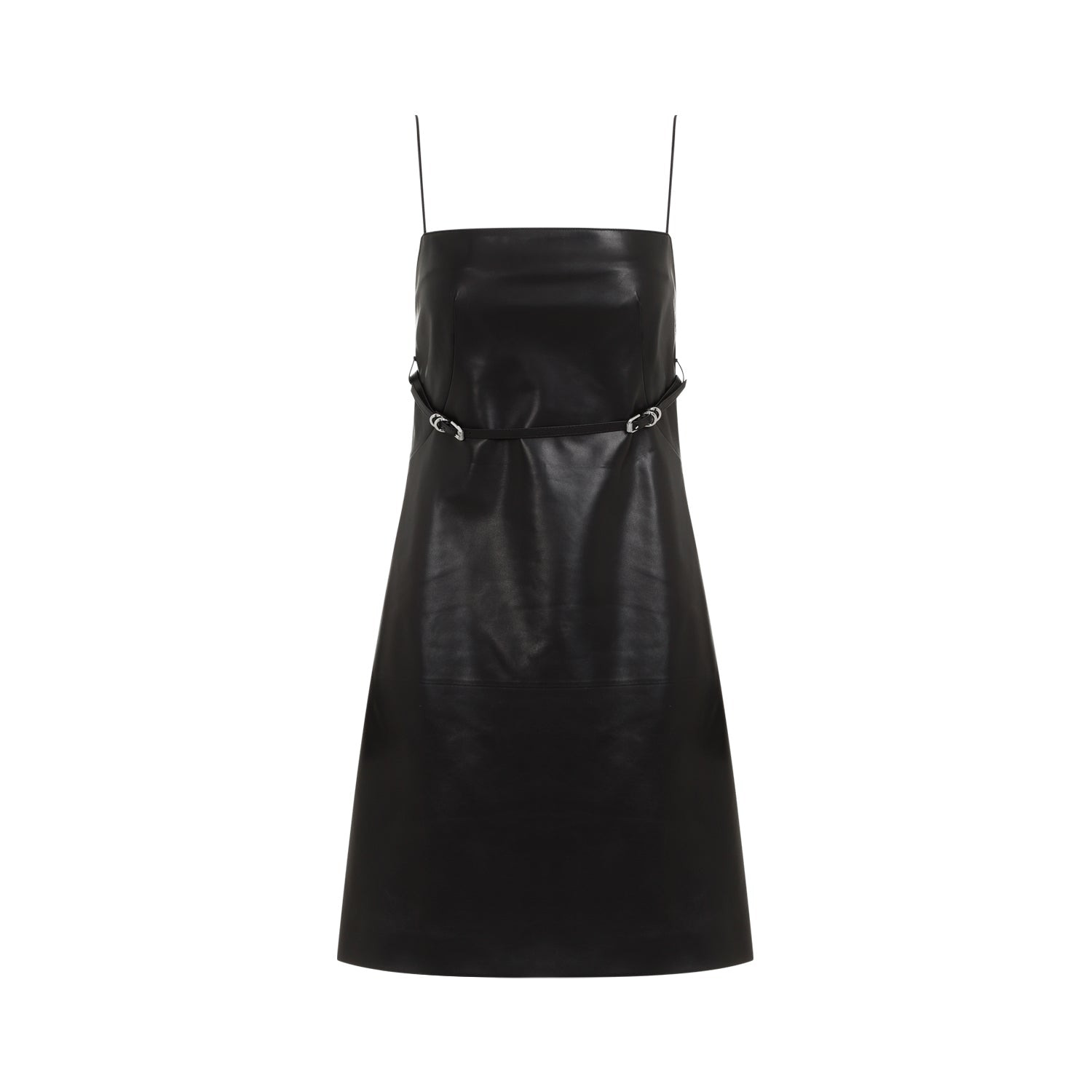 Givenchy Voyou Black Lamb Leather Mini Dress. Black grained lamb leather, straight neckline, ultra-fine straps, detachable tonal belt with buckles, open back, side concealed zipper closure, lined, mini length. Leather | 100%LAMB LEATHER Size Type: FR SKU: BW221C61G9Black Our Products Are 100% Genuine. In All Cases We Stand By The Authenticity Of Every Product Sold On Our Site. All sales are final and we only accept returns for quality issue. Buyer is responsible for any import tax/duty if applicable.