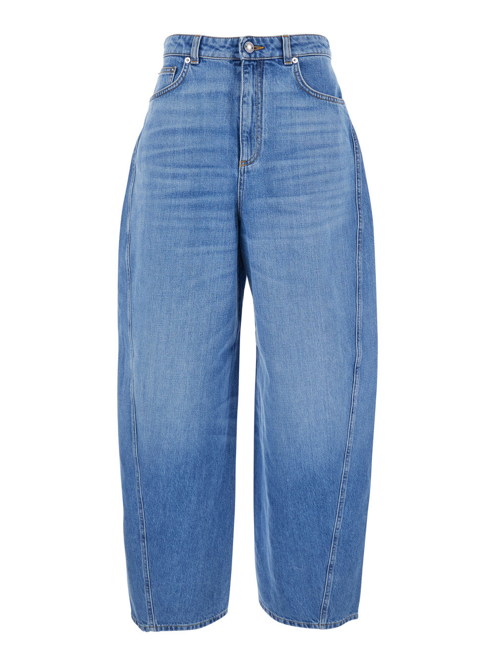 Givenchy Women Blue Jeans With Logo Patch On The Rear And Wide Leg In Denim Woman