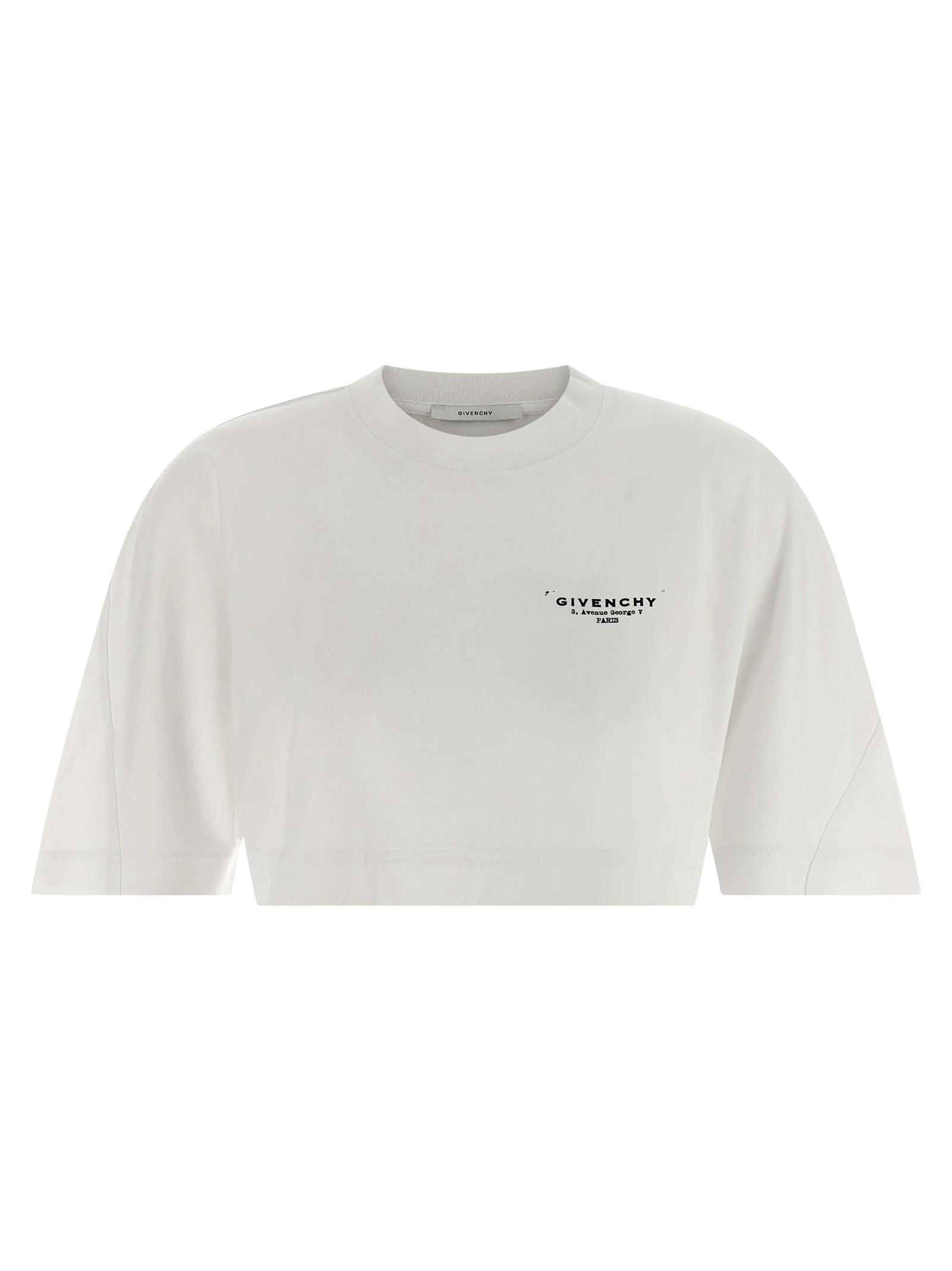 CROPPED FIT T-SHIRT IN COTTON WITH GIVENCHY STAMP PRINT