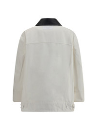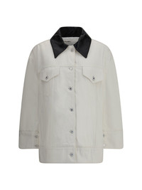 COCOON JACKET IN WHITE DENIM WITH LEATHER COLLAR