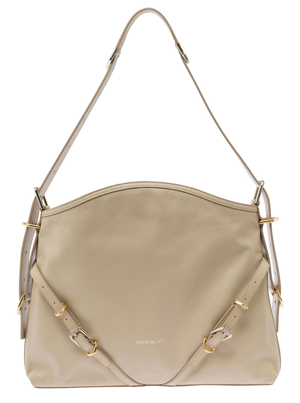Givenchy Women 'Voyou' Beige Shoulder Bag With Embossed Logo In Smooth Leather Woman