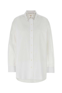 OVERSIZED SHIRT IN COTTON WITH CRYSTALS AND PEARLS