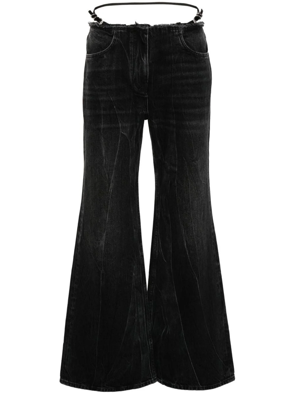 black cotton denim whiskering effect at the thighs belted waist frayed edge front press-stud and zip fastening flared two side inset pockets two rear patch pockets straight hem long length Size Type: Jeans SKU: BW513Z5Y3P001 Our Products Are 100% Genuine. In All Cases We Stand By The Authenticity Of Every Product Sold On Our Site. All sales are final and we only accept returns for quality issue. Buyer is responsible for any import tax/duty if applicable.