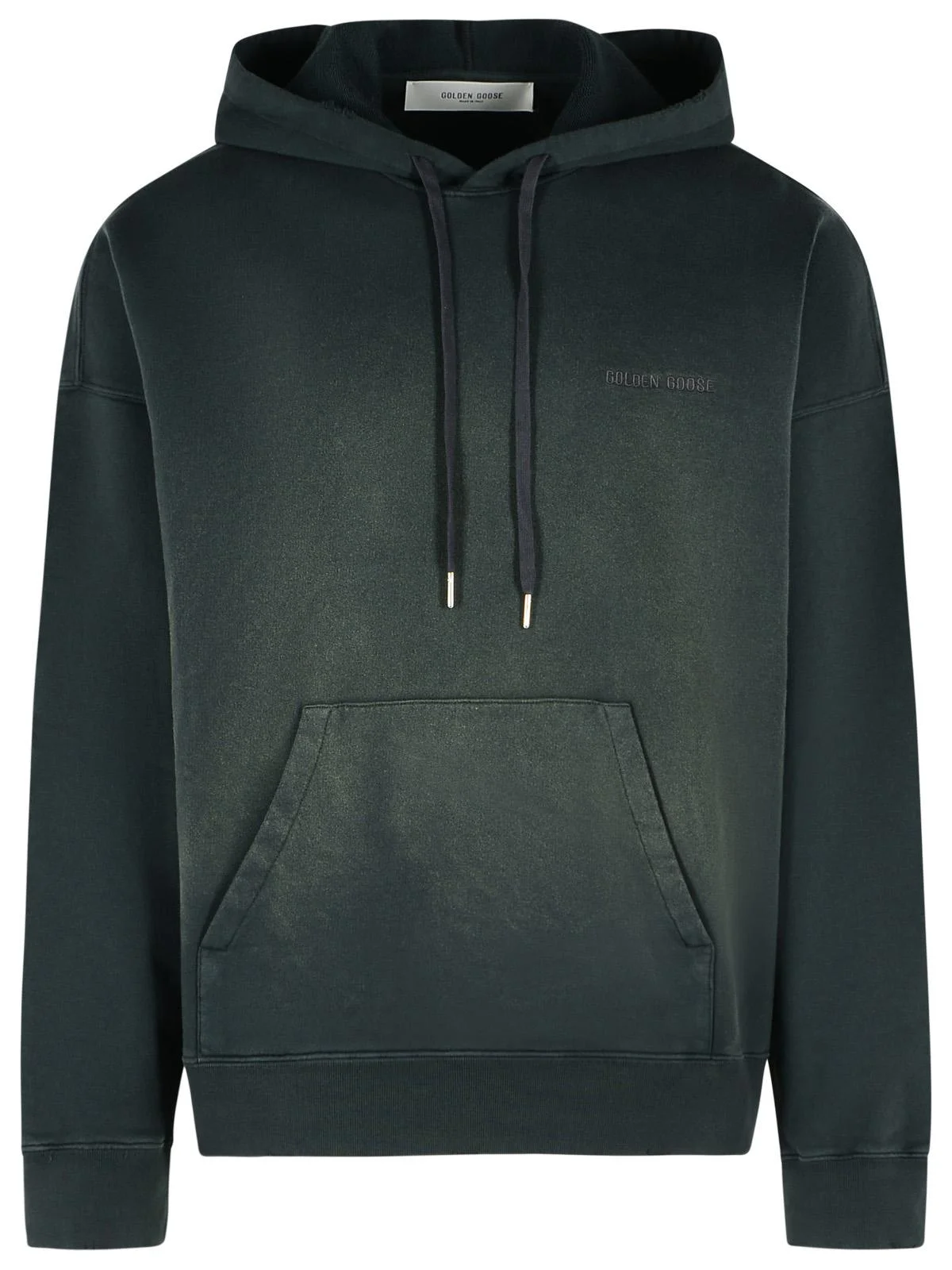 Unisex hooded sweatshirt in black cotton with a bleached effect