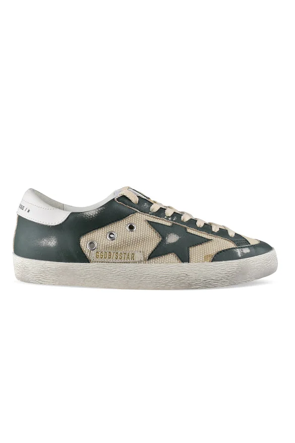 Sneakers Golden Goose Deluxe Brand Superstar. Beige mesh inserts. Dark green leather inserts. Green leather star on visible side. White leather counter with green logo. Beige leather tongue with blue logo label. Worn effect. Beige lace-up fastening. Gold GGDB logo on side. White rubber sole. Made in Italy. Size Type: IT SKU: GMF00108F00459082302 Our Products Are 100% Genuine. In All Cases We Stand By The Authenticity Of Every Product Sold On Our Site. All sales are final and we only accept returns for quality issue. Buyer is responsible for any import tax/duty if applicable.