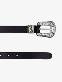Black belt in washed leather with silver color buckle