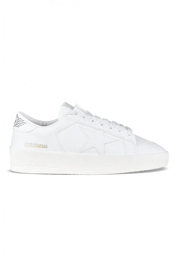Golden Goose Stardan sneakers in white leather. White leather star. Black logo toe cap. White flat lace closure. Signature gold logo on outer side. Thick rubber sole. 100% leather. Made in Italy. Size Type: IT SKU: GWF00128F003951 Our Products Are 100% Genuine. In All Cases We Stand By The Authenticity Of Every Product Sold On Our Site. All sales are final and we only accept returns for quality issue. Buyer is responsible for any import tax/duty if applicable.