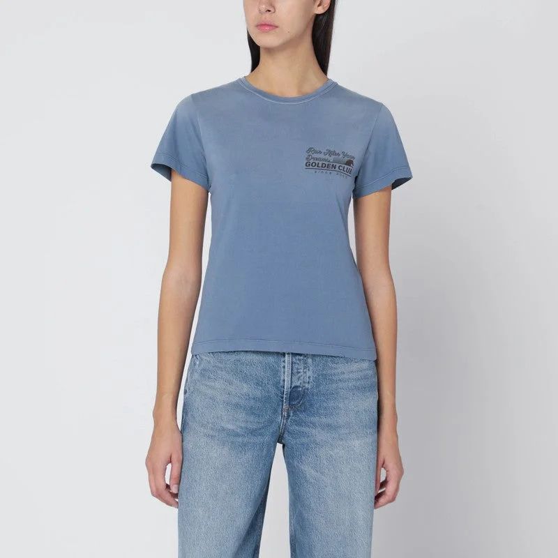 Golden Goose Faded Blue T-Shirt With Print On The Chest Women